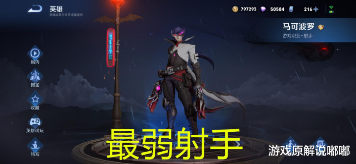 马可波罗虽然是一名老牌射手,该英雄确实也在峡谷中风光过,但是本赛季的马可波罗是有苦难言,巅峰赛射手中胜率垫底,胜率只有可怜的48%,从胜率的数据来看,说马可波罗是本赛季最弱射手一定也不为过。