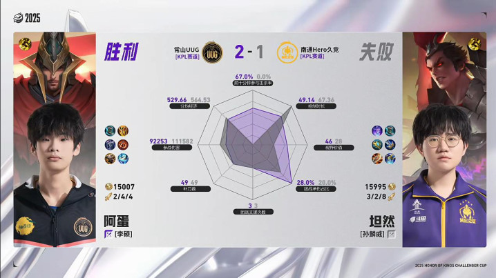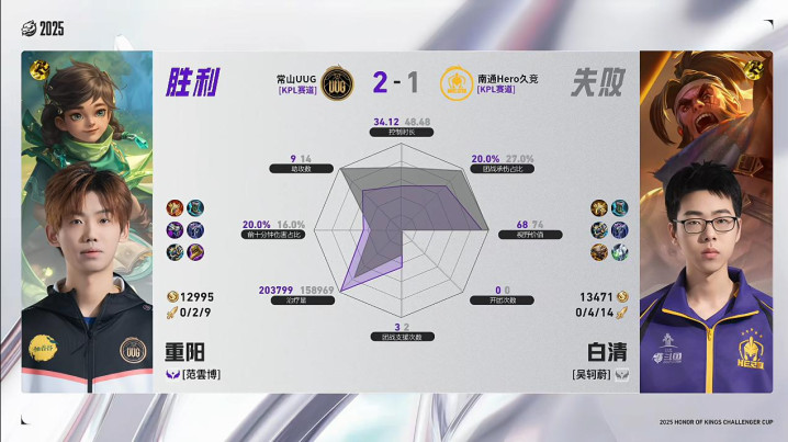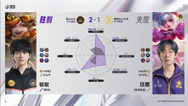 虎扑12月10日讯UUG/Hero第3局数据对比:软软沈梦溪几乎包围玖熙小乔。