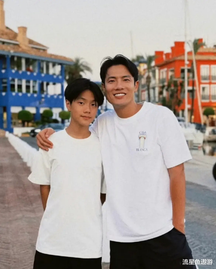 近日,杨千嬅老公丁子高在社交媒体晒出一组父子合照,13岁的丁进诺(Torres)身穿白色短袖,阳光帅气,身高已逼近老爸,引发网友热议。照片中,父子俩同款白T、同款微笑,甚至同款插兜姿势,堪称“复制粘贴式”亲子装,网友纷纷赞叹:“这基因也太强了吧!”