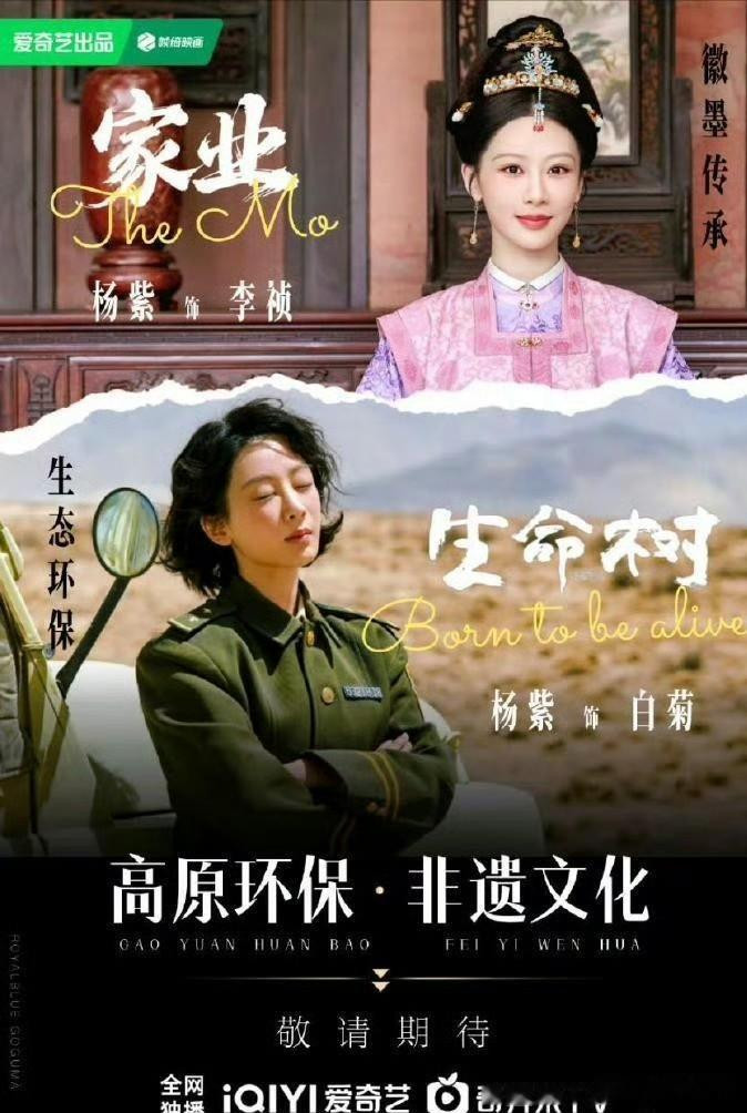 由于今日杨紫两部剧都发出新预告片,《生命树》首发预告片,《家业》的新片花 两部剧可以说各有特色,都是大制作,一个是徽墨制作非遗文化传承,一部是高原守护与拯救,观感都非常好,期待值直接拉满!