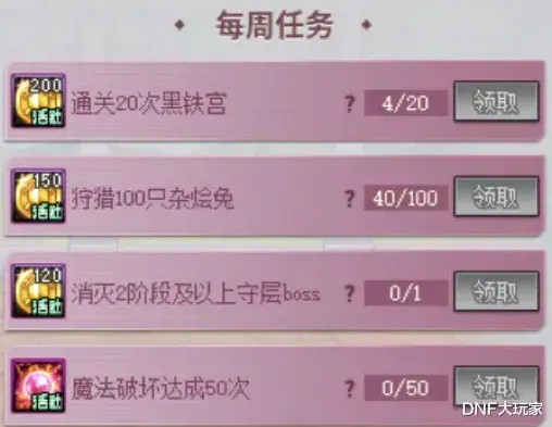 完成每日任务每天有45个币、完成每周任务每周有370个币、可以轻松兑换所有奖励,建议每周兑换优先保证黑铁宫入场券和噩梦材料!