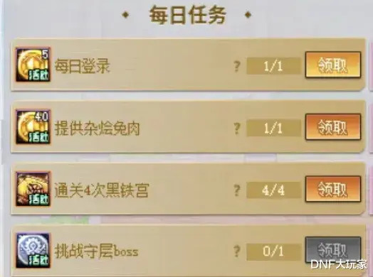 首先、每天只需“先打4次黑铁宫、再提供1次兔肉”,就能完成“任务1、任务2、任务3”。