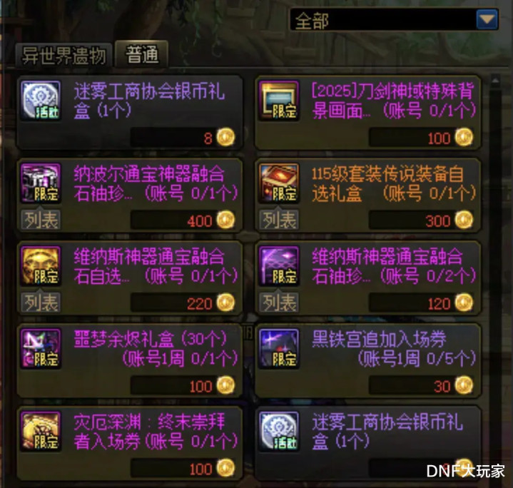 〔6〕30个噩梦材料,100个币,账号每周1次。