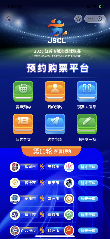 在前九轮“苏超”票务工作当中,部分地市使用票务平台“看个比赛”和大麦网等,也有一些地市一直使用本地文旅平台。比如,宿迁市使用“宿心办”APP,即便外地球迷想抢票,也需要下载安装客户端,注册并通过实名认证等程序,才可以参与。镇江市使用市体育局官方小程序“体育大市口”,该小程序上还具备预约各类运动场地、观看比赛直播和学习体育健康知识等功能。淮安市曾使用“淮跃文旅赛事通”小程序。