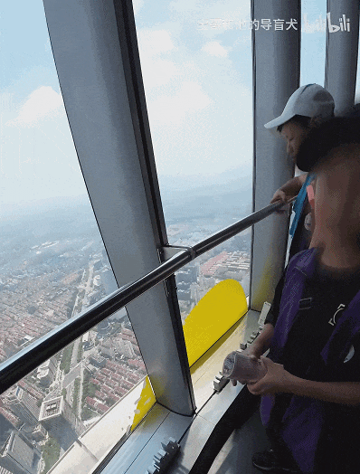 孩子向他介绍,我们可以透过窗看到东方明珠,站得非常高,窗外的景色非常美,很震撼…