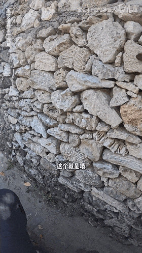 路过珊瑚石盖的房子,观光车的司机特意停下来,把车靠边让宝哥摸摸墙上的珊瑚石。